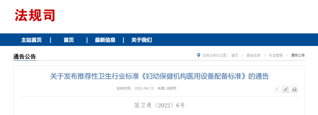 6月1日起施行!國家衛生健康委發布婦幼保健機構醫用設備配備最新標準(附設備清單)