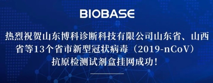 熱烈祝賀山東博科診斷科技有限公司山東省、山西省等13個省市新型冠狀病毒(2019-nCoV)抗原檢測試劑盒掛網成功!