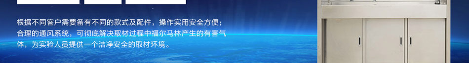 取材臺是病理實驗室中非常重要的安全設備之一,采用304不銹鋼材料制作,可有效防水、防腐,根據不同客戶需要備有不同的款式及配件,操作實用安全方便;合理的通風系統,可徹底解決取材過程中福爾馬林產生的有害氣體,為實驗人員提供一個潔凈安全的取材環境。