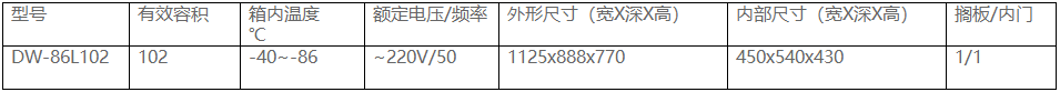 有效容積102L。箱內溫度-40℃~-86℃可調