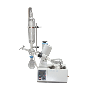 旋轉蒸發器是在真空負壓條件下,利用恒溫加熱,薄膜蒸發的原理研制而成。旋轉蒸發器用無級調速使玻璃旋轉瓶恒速旋轉,物料在瓶壁形成大面積均勻薄膜,再由智能恒溫水浴鍋對旋轉瓶均勻加熱,在真空條件下高速蒸發,溶媒蒸氣經高效玻璃冷凝器冷卻,回收于收集瓶。旋轉蒸發器是在真空條件下工作,且與物料接觸部分全部采用耐高溫高硼硅玻璃和聚四氟乙稀材料,特別適用于對高溫容易分解變性的生物制品的濃縮提純。
