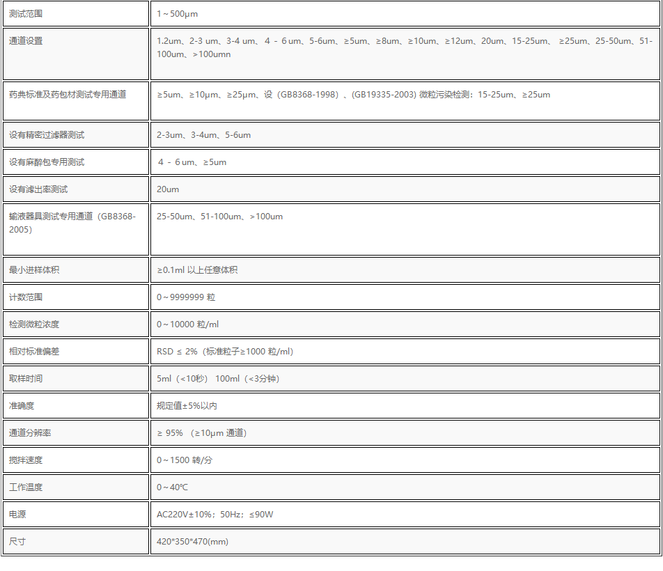 1.滿足《中國藥典》可直接檢測注射液、無菌粉、麻醉包、輸液器具及一次性血路等產(chǎn)品的微粒含量及大小,符合GB8368-1998、GB19335-2003、GB8368-2005及GB8368-2018的檢測標準