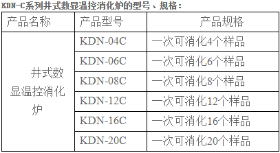 KDN-C系列井式數(shù)顯溫控消化爐有4孔、6孔、8孔、12孔、16孔、20孔可選。可根據(jù)用戶的檢測(cè)量的大小選配,消化一批樣品約需40分鐘(依含氮量)。消化時(shí)逸出的SO2等有害氣體通過(guò)消化爐上的排污管經(jīng)抽氣三通從水中排入下水道。