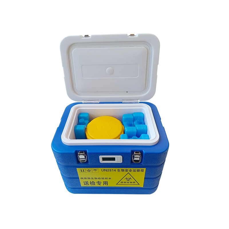 保溫箱1只 數顯溫度計1個 95KPa生物安全運輸罐5只, 海綿試劑管托5只 吸附棉5片 蓄晶冰盒11個 |