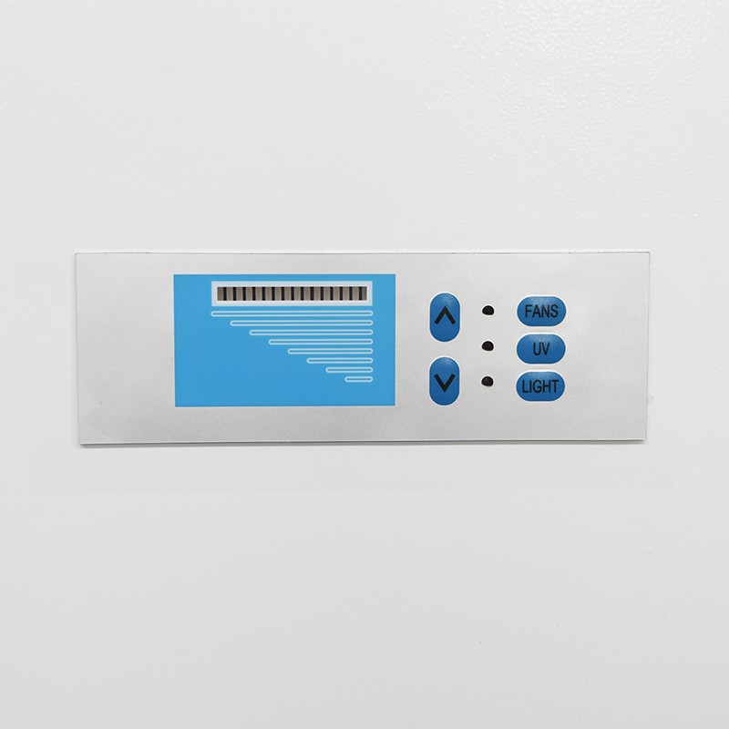 1.8控制面板采用輕觸式開關(guān),按鍵由風(fēng)機(jī)鍵、照明鍵、紫外鍵、電源鍵、風(fēng)量減小鍵、風(fēng)量增大鍵組成,易于操作;顯示屏顯示內(nèi)容有:通過光柱多少顯示風(fēng)機(jī)的風(fēng)速;